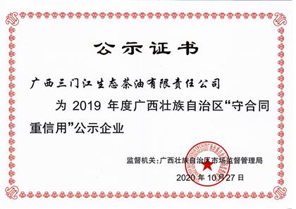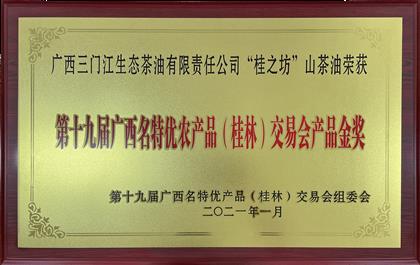 2021年1月,从广西名特优农产品(桂林)交易会组委会获悉,我公司“桂之坊”山茶油荣获第19届广西名特优农产品(桂林)交易会产品金奖。